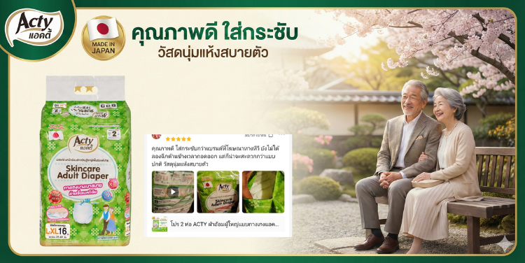 อย่าทนใช้ของที่ไม่พอดีเพียงเพราะเห็นในโฆษณา ลองเปลี่ยนมาสัมผัสความนุ่ม กระชับ และแห้งสบายของ ผ้าอ้อมผู้ใหญ่ Acty แล้วคุณจะรู้ว่าความพรีเมี่ยมที่แท้จริงเป็นอย่างไร